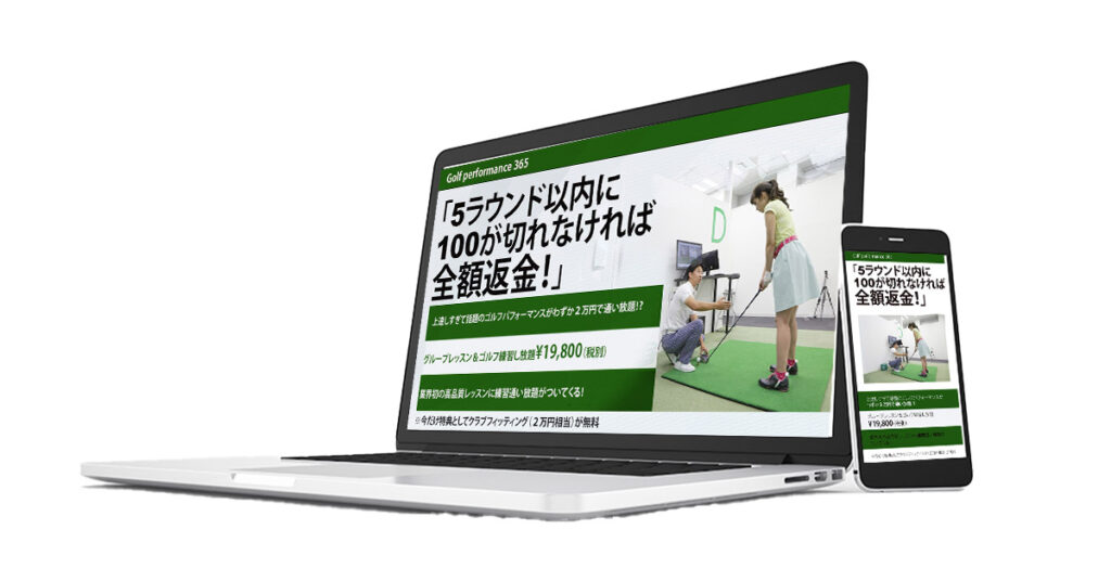 ゴルフのスタジオに誘導が目的。 優しくレッスンが受けれる様子で レッスンを受けてみようかなと思えるように作成しました。